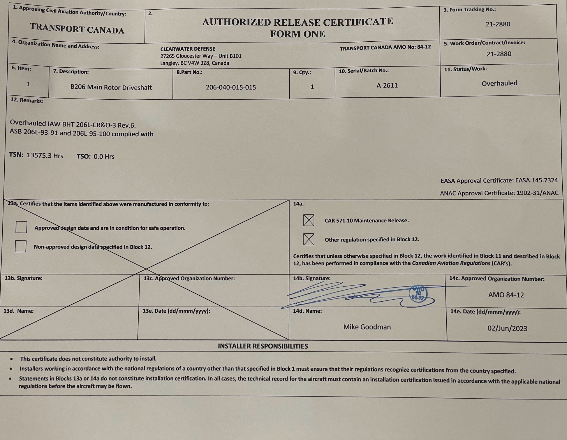 TC / EASA, Log Card